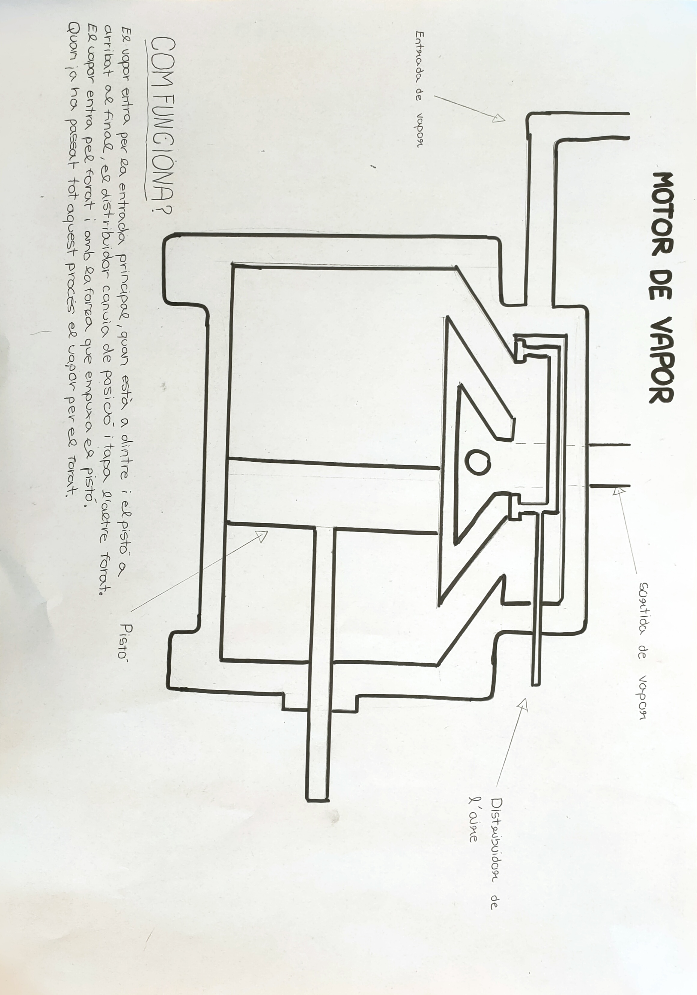 - Aquest vapor a molta pressió viatja per uns tubs fins a un cilindre.